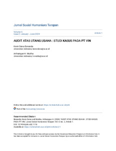 Kevin, Daiva Benanda and Arthaingan, H. Mutiha (2024) Audit atas utang usaha : Studi kasus pada PT VIN. Jurnal Sosial Humaniora Terapan, 6 (2): 1. pp. 1-16. ISSN 2622-1764