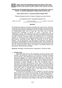 | Uncontrolled Keywords: | Generation alpha, Knowledge, Entrepreneurship, Independence, Autonomy |