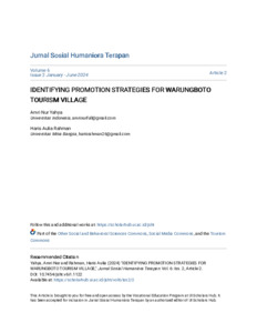 Amri, Nur Yahya and Haris, Aulia Rahman (2024) Identifying promotion strategies for Warungboto Tourism Village. Jurnal Sosial Humaniora Terapan, 6 (2): 2. pp. 16-22. ISSN 2622-1764