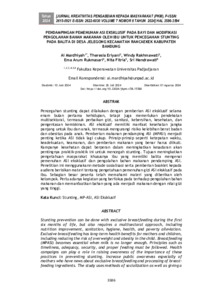 Ai, Mardhiyah and Theresia, Eriyani and Windy, Rakhmawati and Ema, Arum Rukmasari and Nita, Fitria and Sri, Hendrawati (2024) Pendampingan pemenuhan asi eksklusif pada bayi dan modifikasi pengolahan bahan makanan oleh ibu untuk pencegahan stunting pada balita di Desa Jelegong Kecamatan Rancaekek Kabupaten Bandung. Jurnal Kreativitas Pengabdian kepada Masyarakat, 7 (8): 28. pp. 3586-3594. ISSN 2615-0921