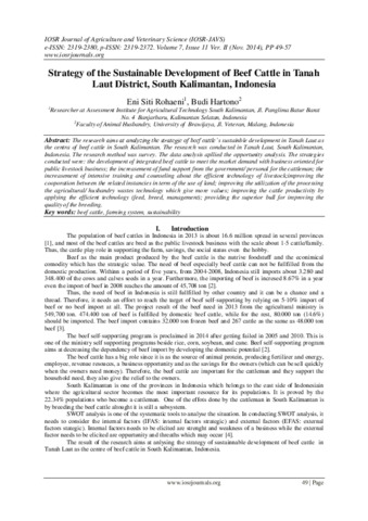 Eni, Siti Rohaeni and Budi, Hartono (2014) Strategy of the sustainable development of beef cattle in Tanah Laut District, South Kalimantan, Indonesia. IOSR Journal of Agriculture and Veterinary Science (IOSR-JAVS), 7 (11). pp. 49-57. ISSN 2319-2380
