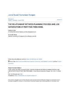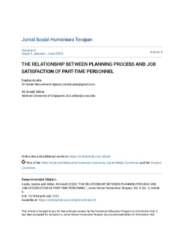 Saskia, Azalia and Ali, Araafi Akbar (2024) The relationship between planning process and job satisfaction of part-time personnel. Jurnal Sosial Humaniora Terapan, 6 (2): 4. pp. 39-50. ISSN 2622-1764