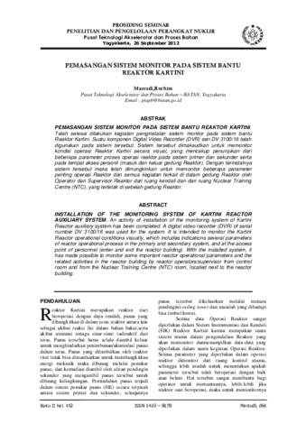 Marsudi, Marsudi and Rochim, Rochim (2012) PEMASANGAN SISTEM MONITOR PADA SISTEM BANTU REAKTOR KARTINI. PROSIDING SEMINAR PENELITIAN DAN PENGELOLAAN PERANGKAT NUKLIR Pusat Teknologi Akselerator dan Proses Bahan. pp. 452-455. ISSN 1410 – 8178