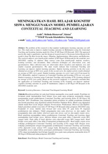 | Uncontrolled Keywords: | Hasil belajar, Model contextual teaching and learning, Kognitif, Model pembelajaran, Pendidikan dasar |