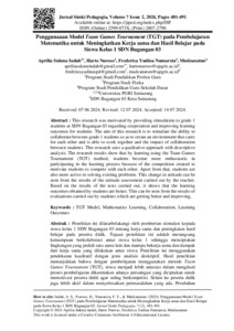 | Uncontrolled Keywords: | Model TGT, Pembelajaran Matematika, Kerja sama, Hasil belajar, Mathematical learning models, Cooperation, Educational acoountability, Elementary school students |