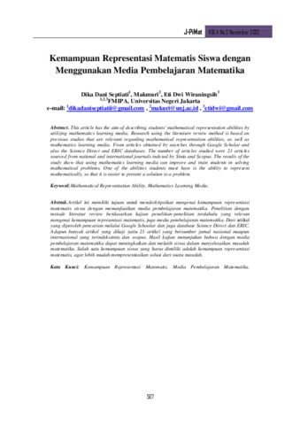 Artikel ini memiliki tujuan untuk mendeskripsikan mengenai kemampuan representasi matematis siswa dengan memanfaatkan media pembelajaran matematika. Penelitian dengan metode literatur review berdasarkan kajian penelitian-penelitian terdahulu yang relevan mengenai kemampuan representasi matematis, juga media pembelajaran matematika. Dari artikel yang diperoleh pencarian melalui Google Schoolar dan juga database Science Direct dan ERIC. Adapun banyak artikel yang dikaji yaitu 21 artikel yang bersumber jurnal nasional maupun internasional yang terindekssinta dan scopus. Hasil kajian menunjukan bahwa dengan media pembelajaran matematika dapat meningkatkan dan melatih siswa dalam menyelesaikan masalah matematika. Salah satu kemampuan siswa yang harus dimiliki adalah kemampuan representasi matematis, agar lebih mudah mempresentasikan solusi dari suatu masalah.