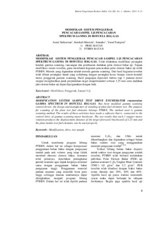 Asnul Sufmawan, AS and Mustofa, Kawkab and Sunarko, Sunarko and Nampira, Yusuf (2015) MODIFIKASI SISTEM PENGGERAK PENCACAH SAMPEL UJI PENCACAHAN SPEKTRUM GAMMA DI HOTCELL RSG-GAS. Buletin "Reaktor". ISSN ISSN: 0216-2695