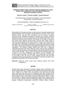 | Uncontrolled Keywords: | Siklus menstruasi, Tingkat stres, Aktivitas fisik, Konsumsi fast food, Psychological stress, Menstruation, Fast food |