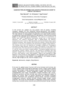 Di era saat ini, gadget sangat di gemari oleh semua kalangan salah satunya usia remaja. Gadget sangat berpengaruh dikalangan remaja, dengan adanya gadget remaja dapat dengan mudah mengakses segala hal yang dibutuhkan termasuk kegiatan pembelajaran. Perilaku penggunaan gadget yang berisiko dalam mengaplikasikan akan dapat menimbulkan masalah kesehatan bagi remaja. Mengetahui gambaran perilaku berisiko pada aktivitas penggunaan gadget di agregat usia remaja. Riset ini bersifat kuantitatif dan memakai rancangan deskriptif kuantitatif serta pendekatan potong lintang. Instrumen penelitian menggunakan kuesioner perilaku berisiko berbasis gadget dengan jumlah responden 188 orang dan dikembangkan menggunakan teknik kuota sampling. Analisa data memakai analisa univariat yaitu statistik deskriptif berupa frekuensi serta persentase perilaku penggunaan gadget. Temuan menunjukkan dimana mayoritas remaja yang belajar di Universitas Tanjungpura berusia antara 18 hingga 22 tahun. Partisipan pada studi ini yaitu laki-laki dan perempuan, karakteristik responden berasal dari semester II, IV, VI dan VIII yang diambil dalam jumlah yang sama, jenis-jenis gadget yang digunakan yaitu smartphone, laptop, tablet dan PC, mayoritas remaja memiliki perilaku berisiko penggunaan gadget dalam kategori sedang dimana sebagian besar remaja dengan usia 20 tahun memiliki perilaku berisiko penggunaan gadget dalam kategori sedang. Terdapat gambaran perilaku berisiko pada aktivitas penggunaan gadget di agregat usia remaja dengan persentase perilaku berisiko penggunaan gadget kategori sedang (92,0%), kategori tinggi (5,3%), dan kategori rendah (2,7%).