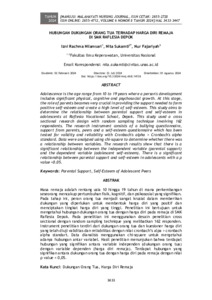 Izni, Rachma Nilamsari and Nita, Sukamti and Nur, Fajariyah (2024) Hubungan dukungan orang tua dengan harga diri remaja di SMK Raflesia Depok. Manuju: Malahayati Nursing Journal, 6 (8): 35. pp. 3433-3447. ISSN 2655-2728