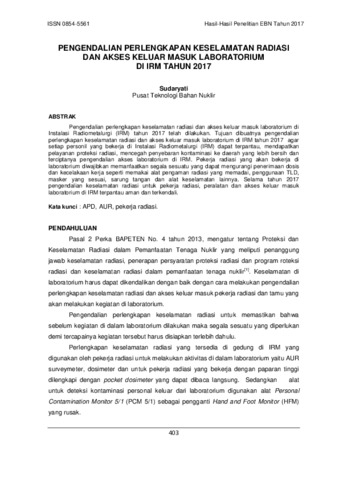 Sudaryati, Sudaryati (2018) PENGENDALIAN PERLENGKAPAN KESELAMATAN RADIASI DAN AKSES KELUAR MASUK LABORATORIUM DI IRM TAHUN 2017. Prosiding Seminar Hasil-hasil Penelitian EBN Tahun 2017, - (-). pp. 403-408. ISSN 0854-5561