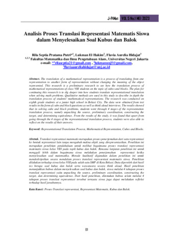 Rila, Septia Pratama Putri and Lukman, El Hakim and Flavia, Aurelia Hidajat (2023) Analisis proses translasi representasi matematis siswa dalam menyelesaikan soal kubus dan balok. Jurnal Pendidikan Matematika (J-PiMat), 5 (1): 2. pp. 611-622. ISSN 2684-7981