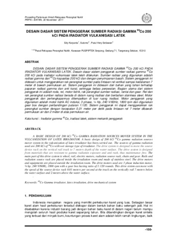 DESAIN DASAR SISTEM PENGGERAK SUMBER RADIASI GAMMA 60Co 200 kCi PADA IRADIATOR VULKANISASI LATEK. Desain dasar sistem penggerak sumber radiasi gamma 60Co 200 kCi pada iradiator vulkanisasi latek telah dilakukan. Sumber radiasi yang digunakan adalah radiasi gamma dari 60Co kapasitas 200 kCi dan dengan penyimpanan basah. Sistem penggerak ini didesain untuk menggerakkan rak perangkat sumber pada lintasan rel vertikal sampai kedalaman 7 meter di bawah permukaan air. Sistem penggerak ini didesain dari bahan yang tahan terhadap paparan radiasi gamma dan anti karat, sehingga bebas perawatan. Bagian utama dari sistem penggerak ini adalah roda, rel, motor listrik, rak perangkat sumber radiasi, rantai dan gear. Rel dan rak perangkat sumber radiasi berada di dalam ruang iradiasi dan berbahan stainless steel. Motor penggerak dan perlengkapannya ditempatkan di luar ruang iradiasi. Motor penggerak yang digunakan adalah motor listrik AC induksi, 3 phase, ¼ Hp, 240 V/60Hz, 1800 rpm dan digunakan gear box dengan perbandingan putaran 1:120. Sistem penggerak ini dapat menggerakkan rak perangkat sumber dengan kecepatan 0,01 meter per detik pada lintasan rel 7 meter dibawah permukaan air dan 2 meter di atas permukaan air.