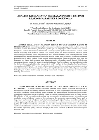 Kata kunci: analisis keselamatan, produk fisi, reaktor Kartini, lingkungan