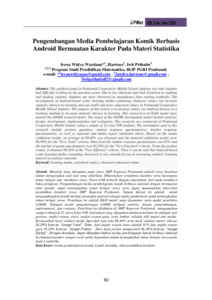 Masalah yang ditemukan pada siswa SMP Koperasi Pontianak adalah siswa kesulitan dalam mengerjakan soal-soal yang diberikan. Setelah mengerjakan soal, siswa merasa puas bahwa tugas yang dikerjakan dapat terselesaikan, namun siswa tidak memeriksa kembali jawaban yang sudah didapatkan. Hal itu dikarenakan rendahnya karakter dan kurangnya minat belajar dan membaca siswa buku pelajaran yang disediakan oleh sekolah. Siswa lebih senang dan tertarik dengan smartphone dari pada membaca buku pelajaran. Pengembangan media pembelajaran komik berbasis android dengan bermuatan nilai karakter ini dapat meningkatkan minat belajar siswa serta dapat menanamkan nilai-nilai pendidikan karakter siswa SMP Koperasi Pontianak. Tujuan dari tulisan ini adalah untuk mengambangkan komik melalui perangkat android sebagai media pembelaran guna meningkatkan minat belajar siswa. Penelitian ini adalah penelitian pengembangan (R&D) model pengembangan yang digunakan dalam penelitian ini yaitu model penelitian ADDIE. Tahapan model pengembangan ADDIE meliputi analisis, desain, pengembangan, implementasi, dan evaluasi. Penelitian ini dilakukan di SMP Koperasi Pontianak dengan menggunakan sampel sebanyak 22 siswa kelas VIII. Instrument yang digunakan dalam penelitian ini meliputi soal posttest, angket respon siswa, angket respon guru, serta lembar validasi ahli materi dan media. Berdasarkan hasil validasi media diperoleh rata-rata sebesar 88,44% serta hasil validasi materi sebesar 88,89% dengan kriteria “Sangat Valid”. Data yang diperoleh dari angket respon siswa adalah 93% dan angket respon guru sebesar 95,29% dengan kriteria “Sangat Praktis”. Berdasarkan hasil posttet siswa memperoleh rata-rata 86,36% dengan kriteria “Sangat Efektif”. Dengan demikian, dapat dikatakan bahwa media pembelajaran komik berbasis android bermuatan karakter sangat cocok untuk digunakan dalam meningkatkan minat belajar siswa pada materi statistika.