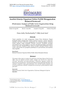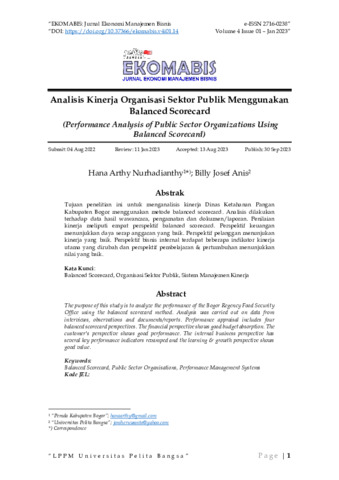 Hana, Arthy Nurhadianthy and Billy, Josef Anis (2023) Analisis kinerja organisasi sektor publik menggunakan balanced scorecard. Jurnal Ekonomi Manajemen Bisnis (EKOMABIS), 4 (1): 1. pp. 1-14. ISSN 2716-0238
