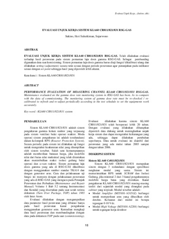 Sukino, Sukino and Heri Suherkiman, HS and Sujarwono, Sujarwono (2008) EVALUASI UNJUK KERJA SISTEM KLA60 CR811/821/831 RSG-GAS. PROSIDING SEMINAR NASIONAL PRANATA NUKLIR. ISSN 978-979-17109-3-0