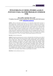 Berdasarkan pengamatan dan wawancara, ditemukan bahwa hasil belajar peserta didik di SMK Negeri Hulu Gurung masih belum mencapai tingkat optimal, terutama dalam memahami materi program linier. Tujuan dari penelitian ini adalah mengembangkan media pembelajaran Powtoon untuk materi program linier di SMK Negeri Hulu Gurung dengan mencapai tingkat validitas, praktikalitas, dan efektivitas yang optimal. Metode penelitian yang digunakan adalah Research and Development (R&D), dan instrumen penelitian meliputi lembar validasi, angket (kuisioner), dan tes. Hasil penelitian terkait kepraktisan menunjukkan tingkat kevalidan yang sangat baik, dengan nilai kevalidan media sebesar 90% dan kevalidan materi sebesar 92,08%. Kemudian, tingkat kepraktisan mencapai standar yang sangat praktis, seperti yang tercermin dari hasil tanggapan peserta didik sebesar 92,66% dan tanggapan guru sebesar 80% dalam angket, yang memenuhi kriteria efektivitas. Evaluasi tes menunjukkan bahwa rata-rata nilai peserta didik adalah 75,6%, sesuai dengan standar kelulusan yang ditetapkan oleh sekolah.