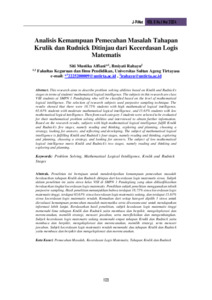 | Uncontrolled Keywords: | Pemecahan masalah, Kecerdasan logis matematis, Tahapan Krulik dan Rudnick, Pendidikan matematika, Teori belajar, Kognisi |