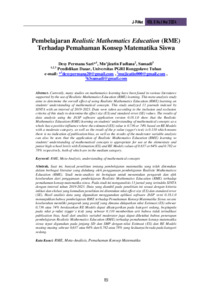 Desy, Permana Sari and Mu’jizatin, Fadiana and Sumadi, Sumadi (2024) Pembelajaran Realistic Mathematics Education (RME) terhadap pemahaman konsep matematika siswa. 2684-7981 Jurnal Pendidikan Matematika (J-PiMat), 6 (1): 11. pp. 1151-1160. ISSN 2684-7981