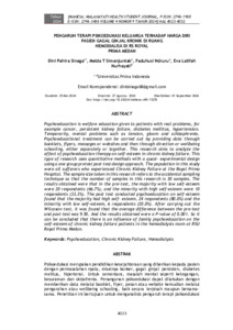 Dini, Pahira Sinaga and Melda, T Simanjuntak and Faduhusi, Ndruru and Eva, Latifah Nurhayati (2024) Pengaruh terapi psikoedukasi keluarga terhadap harga diri pasien gagal ginjal kronik di ruang hemodialisa di RS Royal Prima Medan. MAHESA: Malahayati Health Student Journal, 4 (9): 31. pp. 4023-4032. ISSN 2746-198X