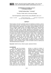 Yulinda, Ferdiana Ubery and Ernawaty, Ernawaty (2024) Determinants of patient loyalty: A systematic review. MAHESA: Malahayati Health Student Journal, 4 (9): 39. pp. 4127-4147. ISSN 2746-198X