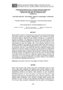 | Uncontrolled Keywords: | Anak usia prasekolah, Intervensi, Nutrisi, Oral hygiene, Nutrition, Preschool children |