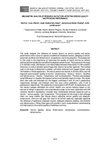 This study analyzes the influence of various factors on service quality and doctor performance with a focus on aspects of additional employee income, adequacy of doctor personnel, facilities and infrastructure, competence, and communication. The background of this study is the importance of improving the quality of health services to achieve optimal patient satisfaction and effective physician performance. The purpose of this study is to identify trends, distribution, and relationships between these factors in the scientific literature, as well as identify research gaps that need to be further explored. The method used in this study is bibliometric analysis, with data collected from Google Scholar using the Publish or Perish application. The search period was limited to 2018 to 2024, and the keywords used included "quality of service," "performance," "doctors," "factors," "facilities and infrastructure," "income," "competence," and "communication." The data was analyzed using VOS viewer to visualize the keyword network and identify research trends.The results show that India and Indonesia are the biggest contributors with 10 and 5 publications respectively. Springer and Emerald were the most active publishers, with 9 and 8 publications respectively. The publication trend peaked in 2019 with 16 publications, and the citation analysis identified the article "Health care service delivery based on the Internet of things: A systematic and comprehensive study" as the most influential with 249citations. Network visualization revealed close relationships between keywords such as "doctor," "service quality," and "competence." The conclusion of this study is that although there are many studies that discuss factors affecting service quality and physician performance, there are still gaps that need to be further explored, especially regarding the influence of additional employee income, adequate physician staffing, and facilities and infrastructure. Filling these gaps will provide a more comprehensive understanding and help improve the overall quality of healthcare services.
