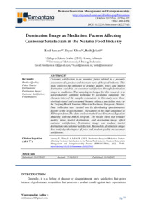 Customer satisfaction is an essential factor related to a person's assessment of a product and the main topic of the food industry. This study analyzes the influence of product quality, price, and tourist destination variables on customer satisfaction through destination image as mediation. The sampling technique for this research is a non-probability sampling technique by accidental sampling. The characteristics of the sample respondents in this study were those who had visited and consumed Natuna culinary specialties twice at the Tanjung Beach Tourism Object in Northeast Bunguran District. Data collection was carried out by distributing questionnaires directly to the research object. The sample in the study amounted to 200 respondents. The data analysis method uses Structural Equation Modeling with the AMOS program. The results show that product quality, price, tourist destinations, and destination image affect customer satisfaction. Destination image can mediate tourist destinations on customer satisfaction. Meanwhile, destination image does not judge the impact of price and product quality on customer satisfaction.