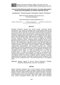 Industri pelayanan kesehatan saat ini telah bergerak menuju peningkatan kualitas yang berkelanjutan. Manajer pelayanan kesehatan harus memasukan kegiatan perawatan yang berpusat pada pasien sebagai komponen utamanya. Kepuasaan pasien menjadi alat peningkatan kualitas untuk kinerja organisasi sarana kesehatan secara keseluruhan. Rumah sakit sebagai sarana kesehatan harus mampu mewujudkan kualitas yang baik, namun masih ditemukan ketidakpuasan pasien terhadap pelayanan rumah sakit termasuk Rumah Sakit Ibu dan Anak Prima Qonita Kabupaten Ogan Komering Ulu Provinsi Sumatera Selatan. Menganalisis faktor kepuasan pasien poli rawat jalan RSIA Prima Qonita Kabupaten Ogan Komering Ulu Provinsi Sumatera Selatan. Metode yang digunakan berupa kuantitatif dengan rancangan cross sectional. Sample yang diambil sebanyak 388 dengan teknik accidental sampling. Variabel yang dinilai yaitu bukti fisik (tangible), kehandalan (reliability), daya tanggap (responsiveness), dan jaminan (assurance) dan empati (empathy). Uji bivariat menggunakan uji korelasi spearman dan multivariat menggunakan uji regresi linear. Berdasarkan hasil uji Korelasi Spearman didapatkan faktor bukti fisik (r= 0,340), faktor empati (r= 0,398), faktor kehandalan (r= 0,409), faktor daya tanggap (r= 0,447), dan faktor jaminan (r= 0,434). Hasil uji regresi linier berganda diperoleh hasil nilai p value sebesar 0,000 dan diperoleh nilai koefisien B sebesar 1,19 pada variabel empati. Masing-masing faktor bukti fisik, empati, kehandalan, daya tanggap dan jaminan secara statistik berpengaruh terhadap kepuasan pasien pelayanan kesehatan di poli rawat jalan. Faktor yang paling dominan adalah faktor empati.