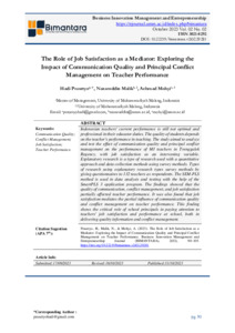 Hadi, Prasetyo and Nazaruddin, Malik and Achmad, Mohyi (2023) The Role of Job Satisfaction as a Mediator: Exploring the Impact of Communication Quality and Principal Conflict Management on Teacher Performance. Business Innovation Management and Entrepreneurship, 2 (2): 2. pp. 90-105. ISSN ISSN 3021-8292