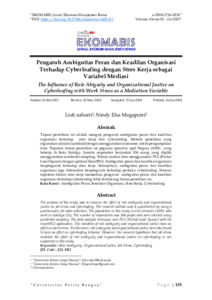 Tujuan penelitian ini adalah menguji pengaruh ambiguitas peran dan keadilan organisasi terhadap stres kerja dan cyberloafing. Metode penelitian yang digunakan adalah kuantitatif dengan menggunakan kuesioner untuk pengumpulan data. Populasi dalam penelitian ini pegawai aparatur sipil Negara (ASN) yang bekerja di Kota Salatiga. Jumlah responden berjumlah 104 orang yang dipilih menggunakan accidental sampling. Teknik analisis data menggunakan PLS (Partial Least Square) dengan aplikasi SmartPLS. Ambiguitas peran dan keadilan organisasi berpengaruh terhadap stres kerja. Selanjutnya, ambiguitas peran dan keadilan organisasi juga ditemukan berpengaruh terhadap perilaku cyberloafing. Namun hipotesis bahwa stres kerja memediasi pengaruh ambiguitas peran dan keadilan organisasi terhadap cyberloafing tidak terdukung dalam penelitian ini.
