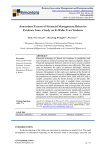 Rizka, Nur Aisyah and Bambang, Widagdo and Warsono, Warsono (2023) Antecedent factors of financial management behavior: evidence from a study on e-Wallet user students. Business Innovation Management and Entrepreneurship, 2 (2): 4. pp. 122-134. ISSN 3021-8292