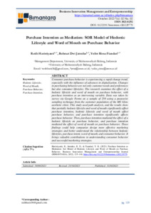 | Uncontrolled Keywords: | Hedonic lifestyle, Word of mouth; Purchase behavior, Purchase intention, Consumer behavior, Consumer research, Consumer attitudes |