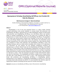 Diah, Evawanna Anuhgera and Elsaria, Sembiring (2024) Hypnopressure on breastfeeding self efficacy and breast milk production in breastfeeding mothers. Optimal Midwife Journal (OMJ), 1 (1): 1. pp. 1-12. ISSN 3062-6765