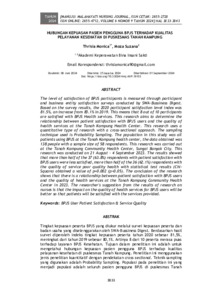 Thrisia, Monica and Moza, Suzana (2024) Hubungan kepuasan pasien pengguna BPJS terhadap kualitas pelayanan kesehatan di Puskesmas Tanah Kampung. Manuju: Malahayati Nursing Journal, 6 (9): 32. pp. 3833-3843. ISSN 2655-2728