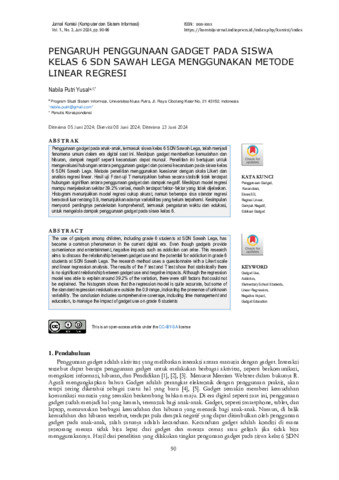 | Uncontrolled Keywords: | Penggunaan gadget, Kecanduan, Siswa SD, Regresi linear, Dampak negatif, Edukasi gadget, Information technology, Internet addiction, Internet addiction |
