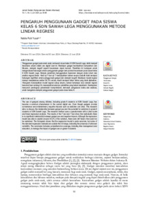 Penggunaan gadget pada anak-anak, termasuk siswa kelas 6 SDN Sawah Lega, telah menjadi fenomena umum dalam era digital saat ini. Meskipun gadget memberikan kemudahan dan hiburan, dampak negatif seperti kecanduan dapat muncul. Penelitian ini bertujuan untuk mengevaluasi hubungan antara penggunaan gadget dan potensi kecanduan pada siswa kelas 6 SDN Sawah Lega. Metode penelitian menggunakan kuesioner dengan skala Likert dan analisis regresi linear. Hasil uji F dan uji T menunjukkan bahwa secara statistik tidak terdapat hubungan signifikan antara penggunaan gadget dan dampak negatif. Meskipun model regresi mampu menjelaskan sekitar 39.2% variasi, masih terdapat faktor-faktor yang tidak dijelaskan. Histogram menunjukkan model regresi cukup akurat, namun beberapa sisa standar regresi berada di luar rentang 0.9, menunjukkan adanya variabilitas yang belum terpahami. Kesimpulan menyoroti pentingnya pendekatan komprehensif, termasuk pengaturan waktu dan edukasi, untuk mengelola dampak penggunaan gadget pada siswa kelas 6.