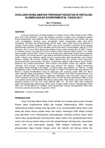 Evaluasi keselamatan terhadap kegiatan di Instalasi Elemen Bakar Eksperimental (IEBE) tahun 2017 telah dilakukan. Tujuan dari kegiatan evaluasi ini adalah untuk mengetahui apakah kinerja keselamatan yang dilakukan telah memenuhi peraturan/standard yang berlaku dan juga untuk mendapatkan masukan guna peningkatan sistem keselamatan pada tahun-tahun mendatang. Penelitian dan pengembangan elemen bakar untuk reaktor daya yang dilakukan di Instalasi Elemen Bakar Eksperimental (IEBE) akan terus mengalami dinamika seiring dengan perkembangan teknologi PLTN dan kebijakan pemerintah dalam mempersiapkan adanya PLTN di Indonesia. Hal ini harus diikuti dengan peningkatan kinerja sistem keselamatan di IEBE. Evaluasi ini dilakukan secara rutin tiap tahun karena adanya potensi bahaya radiasi maupun non radiasi dalam kegiatan operasi IEBE. Potensi ini harus dicegah agar tidak terjadi insiden karena peralatan yang semakin tua, kondisi personil, juga adanya perubahan peraturan serta dinamika kegiatan itu sendiri. Metode yang dilakukan adalah dengan mengumpulkan data keselamatan yang meliputi perijinan instalasi dan personil, proteksi radiasi daerah kerja dan personil, serta lingkungan, peraturan/standard yang berlaku, kemudian mengevaluasi apakah data tersebut sesuai dengan peraturan dan standar keselamatan. Hasil evaluasi menunjukkan bahwa laju paparan radiasi-tertinggi 4,810 µSv/jam di bawah batas yang diijinkan (25 µSv/jam). Tingkat kontaminasi permukaan daerah tertinggi 0,159 Bq/cm2, di bawah batas yang diijinkan (3,7 Bq/cm2). Tingkat keradioaktifan udara di daerah kerja IEBE tertinggi 3,111 Bq/cm3 di bawah batas yang diijinkan (20 Bq/cm3). Lepasan keradioaktifan udara ke lingkungan dari cerobong (stack) IEBE 0,01 Bq/m3 masih dibawah batas yang diijinkan (2 Bq/m3). Dosis Ekivalen Kulit (DEK) tercatat terbesar 0,12 mSv jauh dibawah NBD DEK pertahun (500mSv). Sedangkan Dosis Ekvivalaen Seluruh Tubuh (DEST) sebesar 0,06 mSv jauh dibawah NBD DEST 20 mSv. Hasil dari pemantauan WBC th 2016 menunjukkan bahwa tidak terdetek (ttd) adanya radionuklida. Hasil analisa urine dosis terikat (HE) terpantau sebesar 0,01-0,04 mSv masih dibawah NBD HE (20 mSv). IEBE telah melakukan latihan Penanggulangan Kedaruratan Nuklir yang mengacu pada Program Kesiapsiagaan Nuklir IEBE SOP No 004.009/KN 01 02/BBN. Untuk keselamatan instalasi pengoperasian IEBE telah memenuhi perijinan dan berlaku hingga tahun 2022.