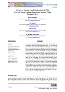 Ariela, Novianisa and Kiki, Syafitri and Rahmat, Shah and M., Reynaldi Putra Efendi (2023) Analysis of business feasibility studies in MSMEs Tahu and Tempe Business Success Jaya Mahato Village Tambusai North. International Journal of Economics, Business and Accounting (InJEBA ), 1 (1): 5. pp. 42-50. ISSN 3032-3754