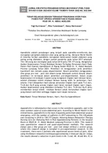 | Uncontrolled Keywords: | Terapi relaksasi benson, Nyeri, Post op appendiktomi, Appendectomy, Pain management, Relaxation, Post operative pain |
