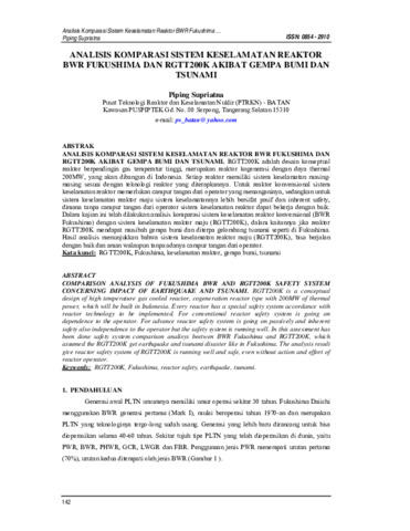 Kata kunci: RGTT200K, Fukushima, keselamatan reaktor, gempa bumi, tsunami
