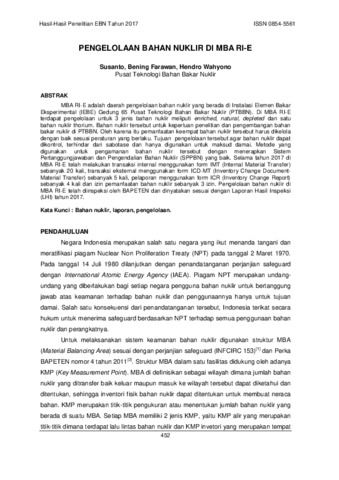 Susanto, Susanto and Farawan, Bening and Wahyono, Hendro (2018) PENGELOLAAN BAHAN NUKLIR DI MBA RI-E. Prosiding Seminar Hasil-hasil Penelitian EBN Tahun 2017, - (-). pp. 452-458. ISSN 0854-5561