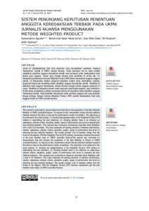 | Uncontrolled Keywords: | Perolehan anggota, Metode Weighted Product, Penelitian anggota, Membership, Selection Methodology, Research Methodology |