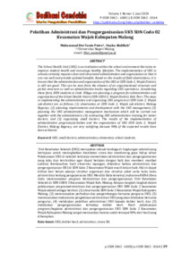 Unit Kesehatan Sekolah (UKS) merupakan sebuah lembaga di lingkungan sekolah yang bertujuan untuk meningkatkan kesehatan siswa dan mendorong gaya hidup sehat. Pelaksanaan UKS di sekolah tentunya memerlukan administrasi dan pengorganisasian yang jelas dan terstruktur agar dapat berjalan dengan baik dan memberi manfaat optimal. Berdasarkan hasil observasi lapangan, diketahui bahwa administrasi dan pengorganisasian UKS di SDN Codo 2 Kecamatan Wajak masih belum baik. Hal ini dapat dilihat dari belum adanya struktur organisasi dan struktur piket serta buku buku administrasi tentang pengoperasian UKS. Meniliki fakta tersebut, mahasiwa KKN di Desa Codo merencanakan program Administrasi dan pengorganisasian Unit Kesehatan Sekolah di SDN CODO 2 Kecamatan Wajak Kab. Malang. Adapun langkah-langkah dalam pelaksanaan programadministrasi dan pengorganisasian UKS SDN Codo 2 kecamatan Wajak adalah sebagai berikut: (1) observasike SDN Codo 2 Kecamatan Wajak Kabupaten Malang; (2) merencanakan perbaikan dan pengembangan bersama pengurus UKS; (3) merencanakan mekanisme pengelolaan administrasi UKS yang akan dilakukan bersama pengurus; (4) melakukan pelatihan administrasi UKS kepada dokter kecil; dan (5) melakukan pengorganisasian terhadap dokter kecil. Hasil pelaksanaan program/kegiatan administrasi dan pengorganisasian UKS SDN Codo 2 Kecamatan Wajak Kabupaten Malang sangat memuaskan karena sudah tercapai 90% dari hasil yang diharapkan.