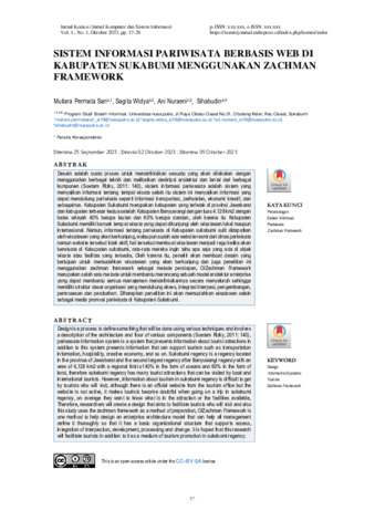 Mutiara, Permata Sari and Sagita, Widya and Ani, Nuraeni and Sihabudin, Sihabudin (2023) Sistem informasi pariwisata berbasis web di Kabupaten Sukabumi menggunakan Zachman Framework. Jurnal Komputer dan Sistem Informasi (KOMISI), 1 (1): 3. pp. 17-26. ISSN 3062-6668