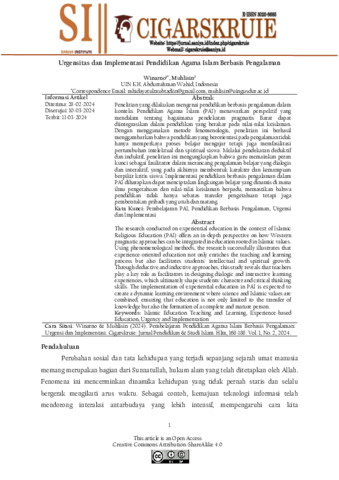 Winarno, Winarno and Muhlisin, Muhlisin Urgensitas dan implementasi Pendidikan Agama Islam berbasis pengalaman. Jurnal Pendidikan dan Studi Islam (Cigarskruie), 1 (2): 13. pp. 168-188. ISSN 3025-8685