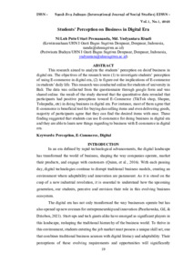 This research aimed to analyze the students’ perception ondoinf businessin digital era. The objectivesof the research were(1) to investigate students’ perception of using E-commercein digital era, (2) to figure out the implications of E-commercein students’ daily life. This research was conducted online for students of university in Bali. The data was collected from the questionnaire through google form and was shared online. the result of the study showed that the quantitative data revealed that participants had positive perceptions toward E-Commerce (TikTok shop, Shopee, Tokopedia, etc)in doing business in digital era. For instance, most of them agree that E-commerceis beneficialtool for buying dan selling items and even delivering goods, majority of participants agree that they can find the desired items with ease. These finding suggestedthat students can use E-commercefor doing business in digital era and they are able to learn new things regarding to business with E-commerce in digital era.