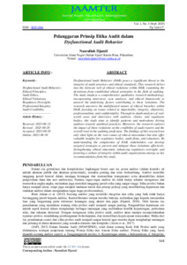 Dysfunctional Audit Behavior (DAB) poses a significant threat to the integrity of audit practices and ethical standards. This research delves into the intricate web of ethical violations within DAB, examining the deviations from established ethical principles in the field of auditing. The study employs a comprehensive qualitative research methodology, incorporating interviews, case analyses, and ethical frameworks to unravel the underlying factors contributing to these violations. The research uncovers the multifaceted nature of ethical breaches within DAB, focusing on issues related to impartiality, integrity, objectivity, professionalism, and confidentiality. Through in-depth analyses of real-world cases and interviews with auditors, clients, and regulatory bodies, this study aims to identify patterns and motivations driving auditors towards unethical practices. Moreover, the research explores the impact of these violations on the credibility of audit reports and the overall trust in the auditing profession. The findings of this research not only shed light on the root causes of ethical misconduct but also offer valuable insights for regulatory bodies, audit firms, and educators. By understanding the complexities of DAB, stakeholders can develop targeted strategies to prevent and mitigate these violations effectively. Strengthening ethical education, enhancing regulatory oversight, and fostering a culture of integrity within audit organizations emerge as key recommendations from this study.