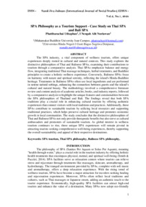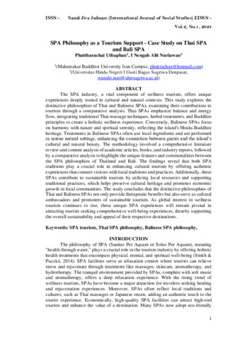 The SPAindustry, a vital component of wellness tourism, offers unique experiences deeply rooted in cultural and natural contexts. This study explores the distinctive philosophies of Thai and Balinese SPAs, examining their contributions to tourism through a comparative analysis. Thai SPAs emphasize balance and energy flow, integrating traditional Thai massage techniques, herbal treatments, and Buddhist principles to create a holistic wellness experience. Conversely, Balinese SPAs focus on harmony with nature and spiritual serenity, reflecting the island's Hindu-Buddhist heritage. Treatments in Balinese SPAs often use local ingredients and are performed in serene natural settings, enhancing the connection between guests and the island’s cultural and natural beauty. The methodology involved a comprehensive literature review and content analysis of academic articles, books, and industry reports, followed by a comparative analysis to highlight the unique features and commonalities between the SPAphilosophies of Thailand and Bali. The findings reveal that both SPAtraditions play a crucial role in enhancing cultural tourism by offering authentic experiences that connect visitors with local traditions and practices. Additionally, these SPAs contribute to sustainable tourism by utilizing local resources and supporting traditional practices, which helps preserve cultural heritage and promotes economic growth in local communities. The study concludes that the distinctive philosophies of Thai and Balinese SPAs not only provide therapeutic benefits but also serve as cultural ambassadors and promoters of sustainable tourism. As global interest in wellness tourism continues to rise, these unique SPAexperiences will remain pivotal in attracting tourists seeking comprehensive well-being experiences, thereby supporting the overall sustainability and appeal of their respective destinations